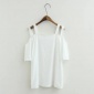2017春夏新款韩版大码胖妹妹一字领纯色露肩短袖T恤吊带衫潮