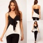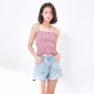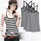 欧美新款条纹吊带衫短款蝴蝶结裹胸式衬衫上衣女外贸速卖通