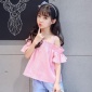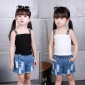 童装女童新款夏装2017中大童韩版淑女纯色漏肩吊带衫上衣一件代发