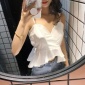 2016年外贸热卖韩版纯色气质荷叶边双层雪纺吊带衫休闲百搭上衣
