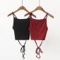 2019欧美风螺纹性感抹胸低领收腰抽绳纯色百搭背心修身吊带衫