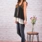 8342-2017春装新款 欧美风宽松款网纱拼接开叉丝绒吊带衫 背心