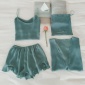 夏季宽松开衫睡衣套装女短款吊带衫+木耳边短裤家居服四件套