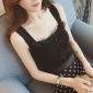 吊带背心女性感露胸修身短款纽扣紧身上衣夜店女装夏打底细吊带衫