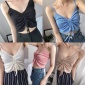 跨境欧美新款条纹吊带衫短款蝴蝶结裹胸式衬衫上衣女外贸速卖通