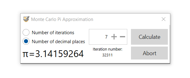 Monte Carlo simulations are computational algorithms that rely on sampling of random numbers. Simulation of random numbers is then repeated numerous times in order to estimate something. This program allows for a numerical determining the value of