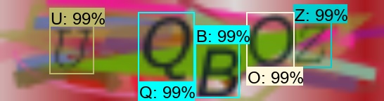 from CAPTCHA_object_detection import * print(Captcha_detection("10.jpg")) I added one line into the code to increase the size of CAPTCHAS by three times because usually, they are tiny. Without resizing the image, our model would detect it in the wrong way.