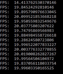 We can see that average is about 19-20 FPS. Here are results with multiprocessing: