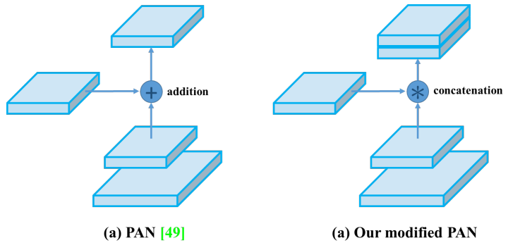 In the image below taken from Path Aggregation Network (PAN) paper, a bottom-up path (b) is augmented to make low-layer information easier to propagate to the top. In FPN, the localized spatial information travels upward in the red arrow. It is not clearly demonstrated in the image, but the red path goes through about 100+ layers. PAN introduced a short-cut path (the green path) which only takes about ten layers to go to the top N₅ layer. These short-circuit concepts make fine-grain localized information available to top layers.