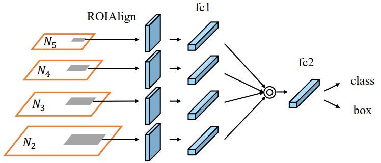 In Feature Pyramid Networks, objects are detected separately and independently at different scale levels. This may produce duplicated predictions and not utilize information from other feature maps. PAN fuses the data from all layers first using element-wise max operation: