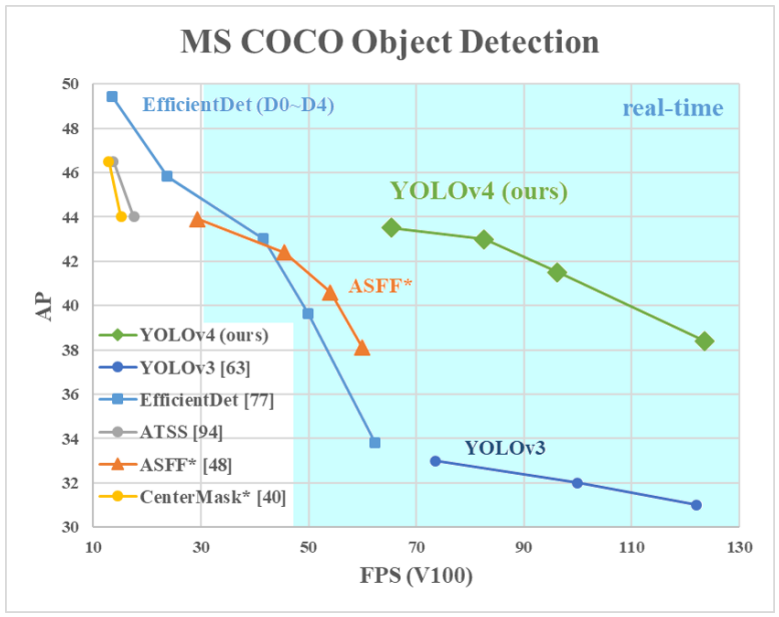 Most people in the field today are used to YOLOv3, which already produces excellent results. But now, YOLOv4 has improved again in terms of accuracy (average precision) and speed (FPS) - the two metrics we generally use to qualify an object detection algorithm: