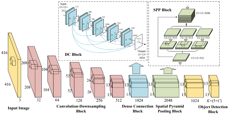 Finally, Spatial Pyramid Pooling (SPP), used in R-CNN networks and numerous other algorithms, is used here.