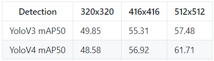 So, these are my results, to make a more accurate generalization, we would need to do more testings, but it's enough to make your own initial opinion about YOLOv4. We can see that YOLOv4 performance significantly increase when we use an input image with 512x512 size. Maybe I have something wrong implemented in my evaluation function, I can't tell you, but if someone finds any mistakes and reports them on GitHub, I will fix it! So, don't hesitate to do that. Moreover, I will be working on this project for quite some time to fix all issues.
