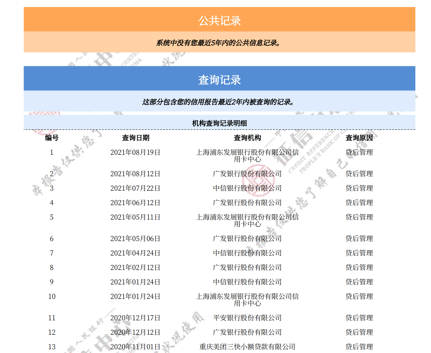 人民银行详细版征信记录,包括网贷、房贷、车贷、信用卡等
