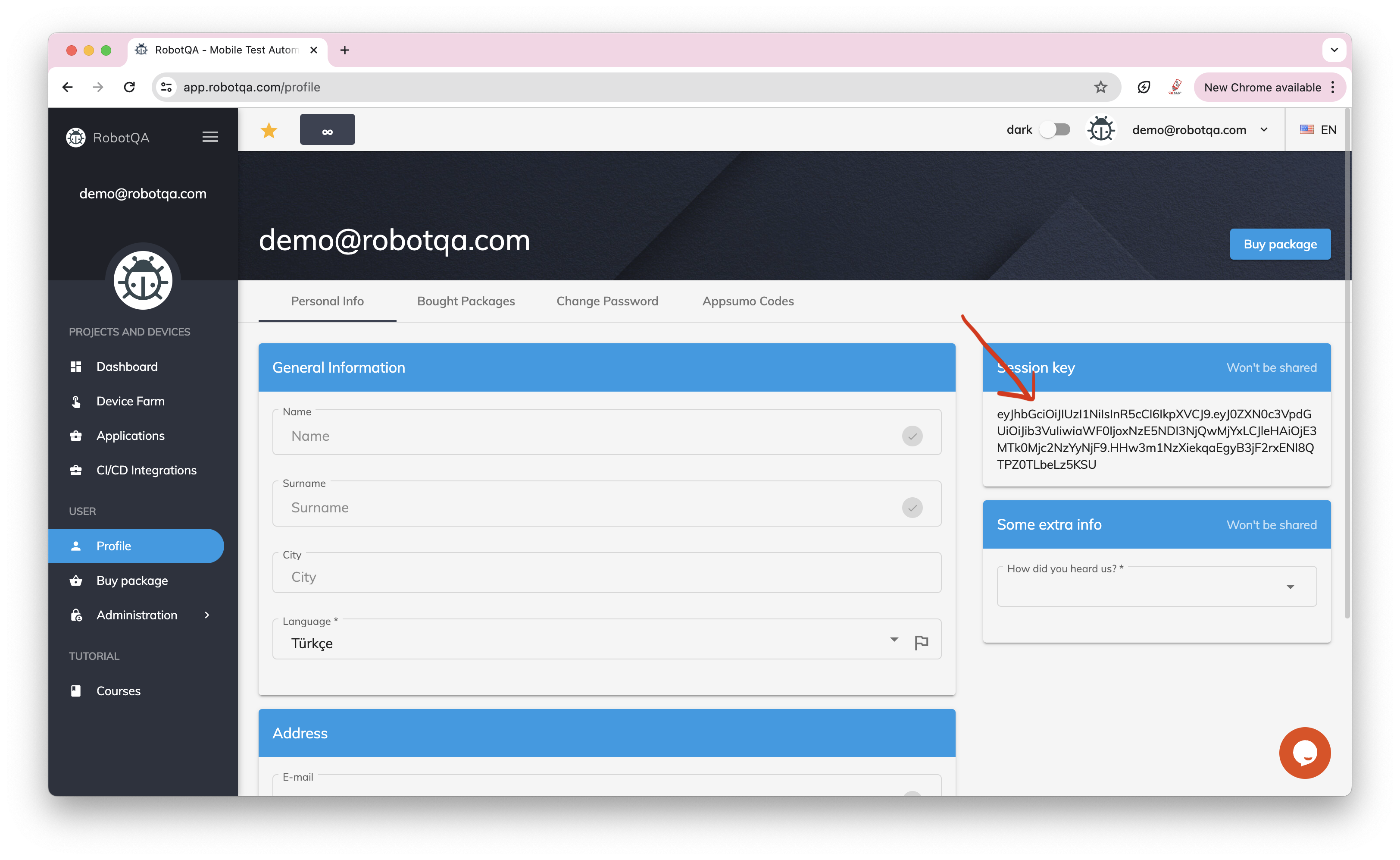 To connect a device, firstly click Enable RobotQA Device Farm Connection button. Note that: When you enable connection and using our device farm, you will lost your local device connections