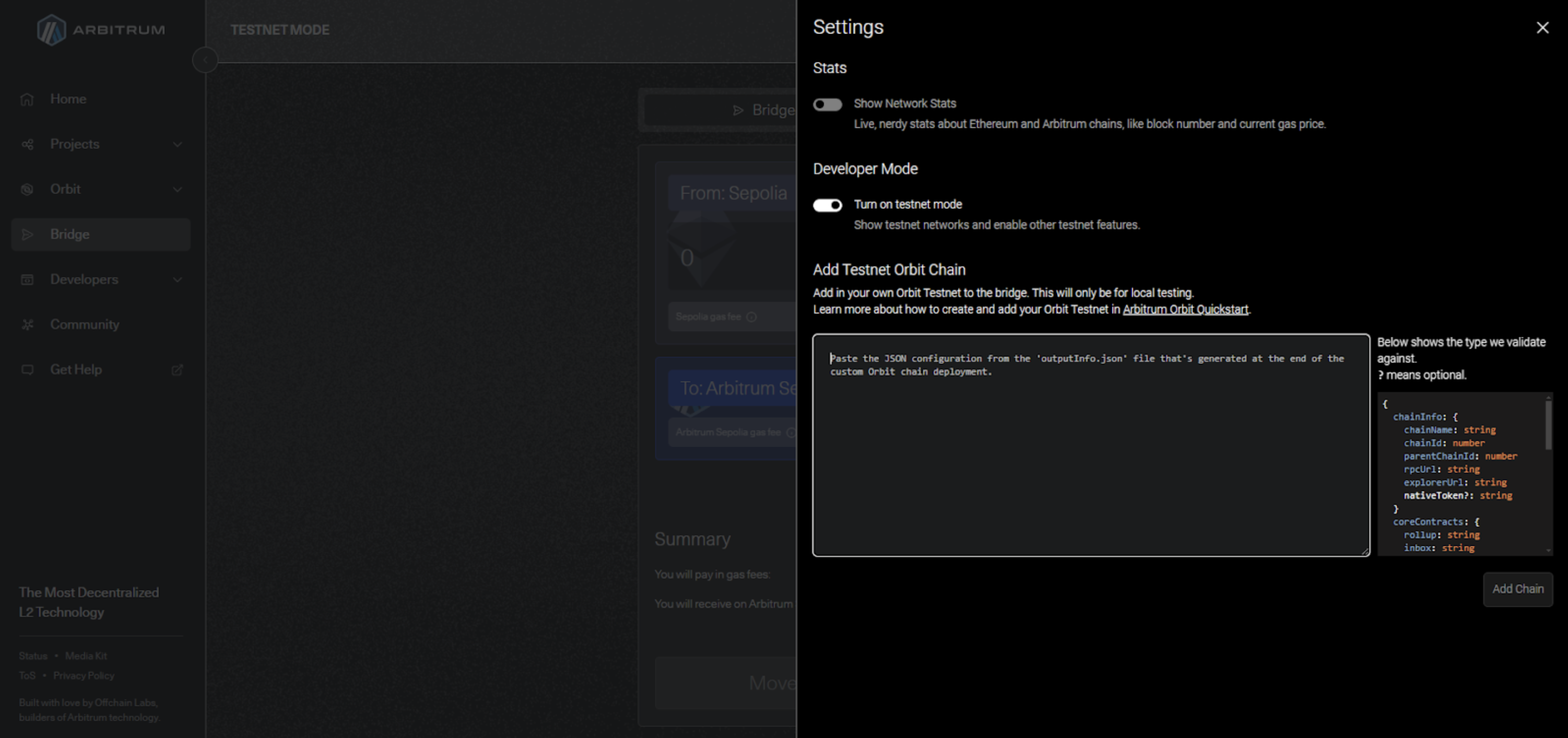 To bridge funds using Arbitrum Orbit, follow these steps: