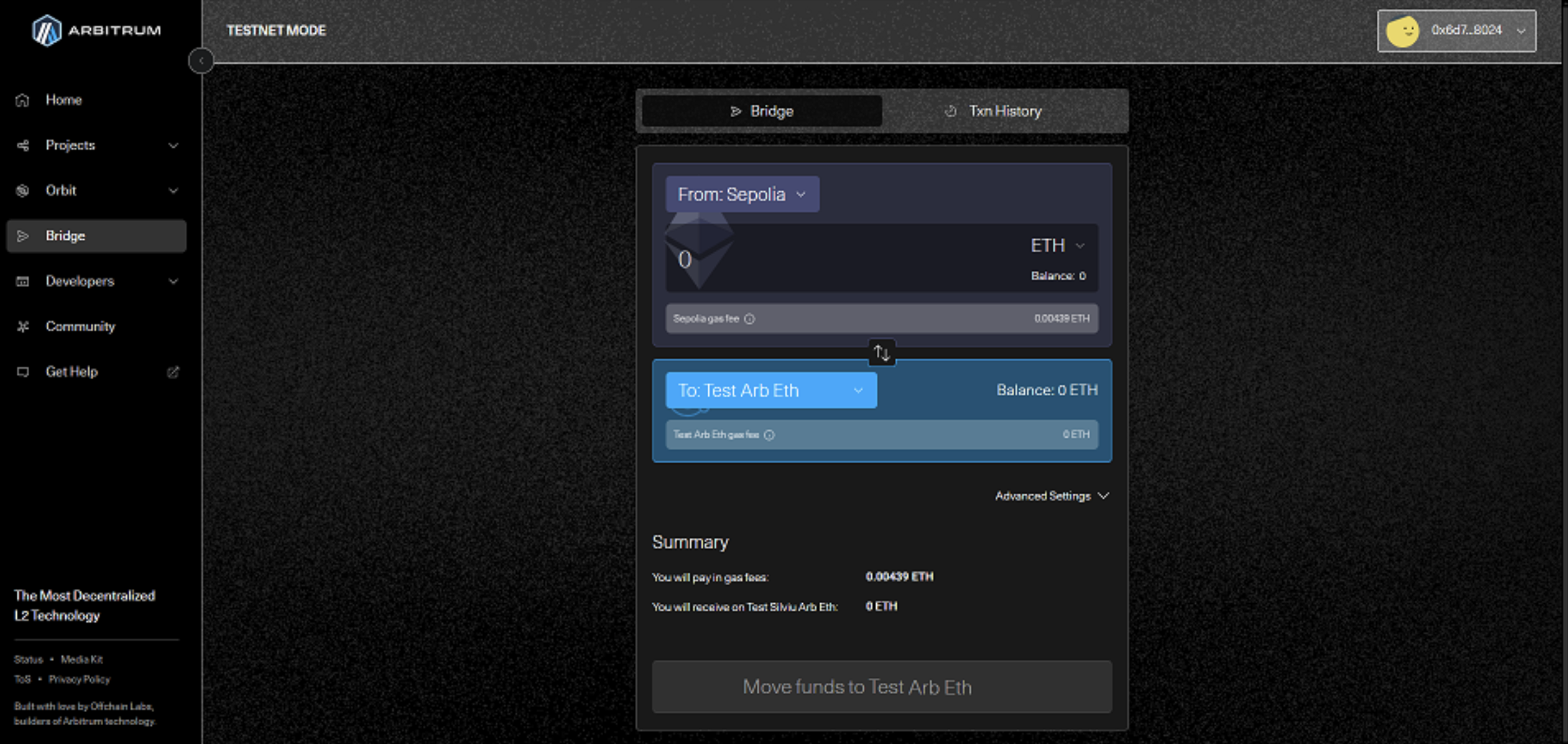 - Move funds from Ethereum (L1) to your Arbitrum Rollup (L2)