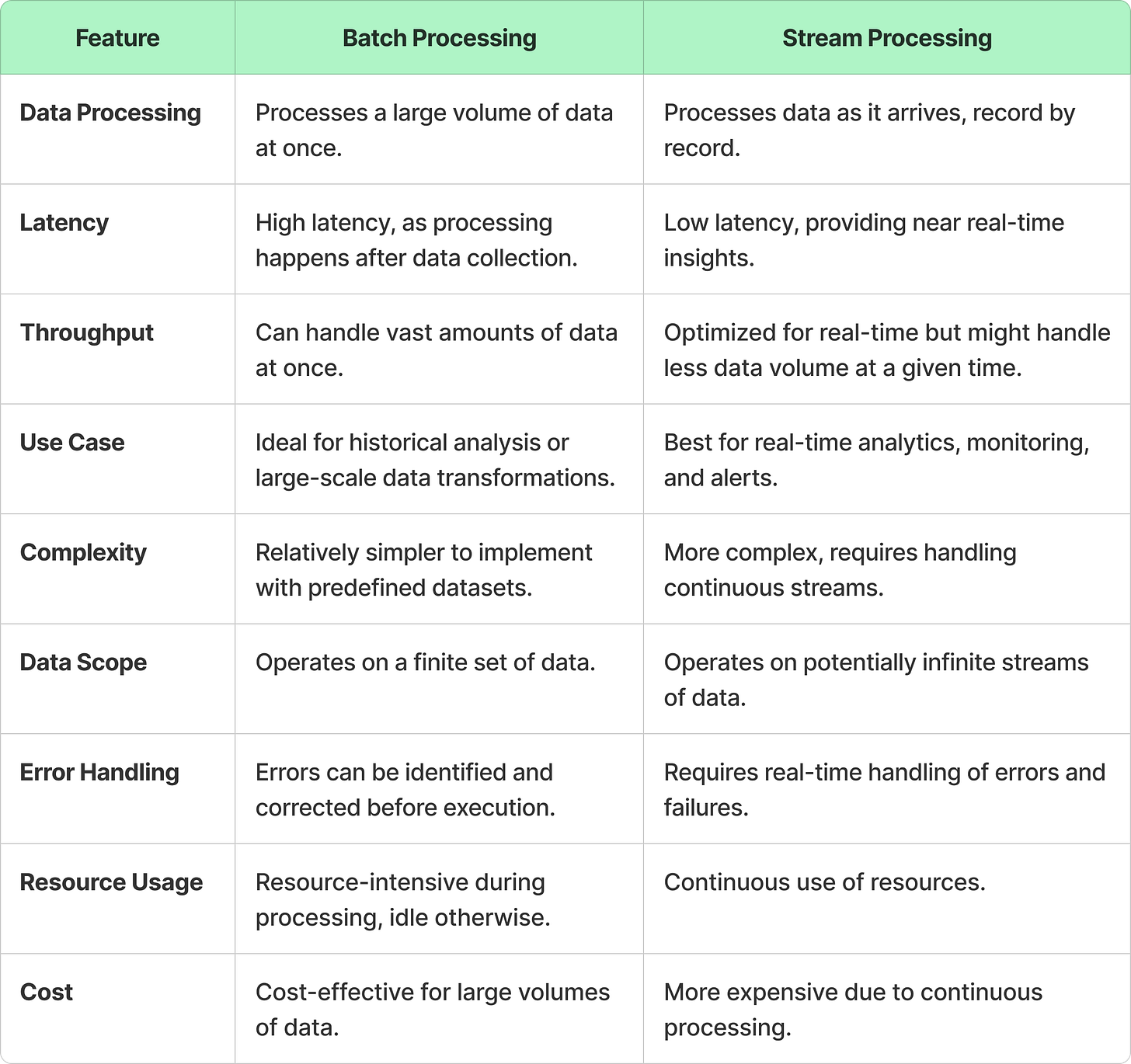 In this article, we'll dive into the details of batch processing and stream processing, explore their characteristics, differences, and provide examples to clarify their use cases.