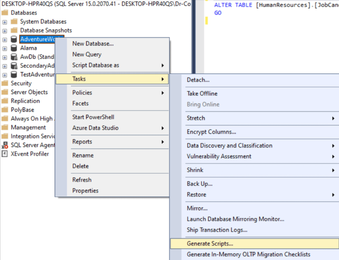 Another way to move a database from a Windows server to a Linux server is to create a T-SQL script. This is similar to what mysqldump or pg_dump does.