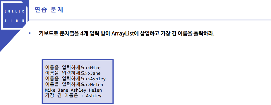 | package _1027_A; import java.util.*; // 키보드로 문자열을 4개 입력 받아 ArrayList에 삽입하고 가장 긴 이름을 출력하라. // 가장 긴 이름은 : Ashley public class Main { public static void main(String[] args) { ArrayList<String> s = new ArrayList<String>(); int index = 0, max = -1; for(int i = 0; i < 4; i++) { Scanner sc = new Scanner(System.in); System.out.print("이름을 입력하세요>>"); s.add(new String(sc.nextLine())); if(max < s.get(i).length()) { max = s.get(i).length(); index = i; } } for (String str : s) { System.out.print(str+" "); } System.out.println("\n"+s.get(index)); } } | cs |