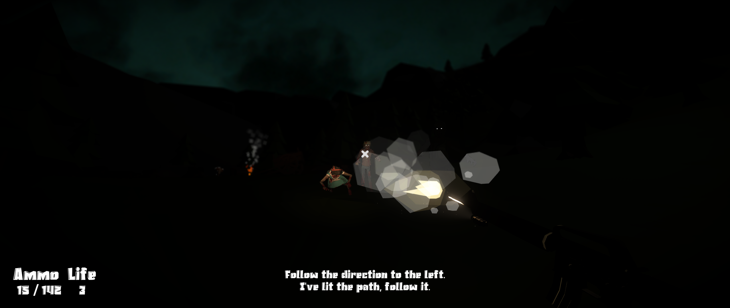 Lost in the dark mountains, you must climb to the top of the mountain to ask for help. Follow the path and move without dying. Use your gun to kill zombies and protect yourself.