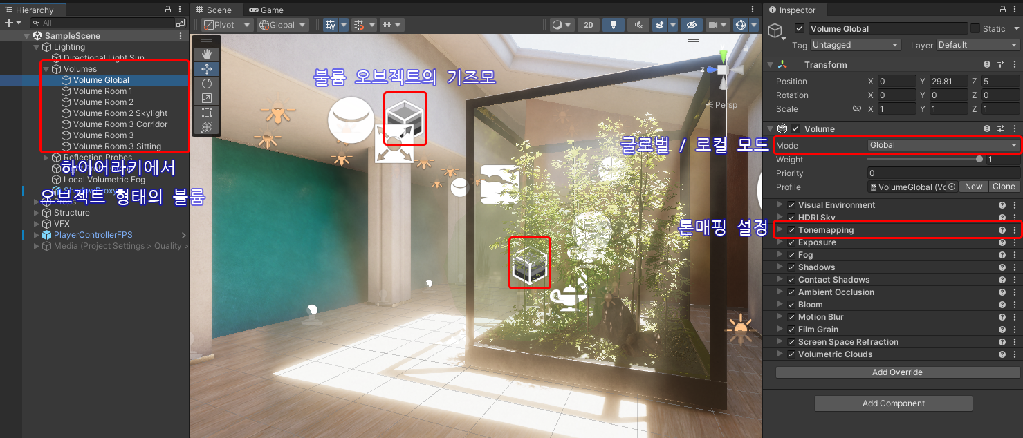 Global Volumes는 어디에 있든 카메라에 영향을 미칩니다.