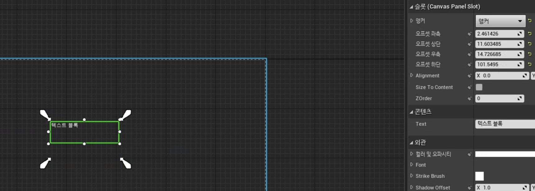 * 버튼에는 Text Property가 없어서 텍스트를 따로 만들었음.
