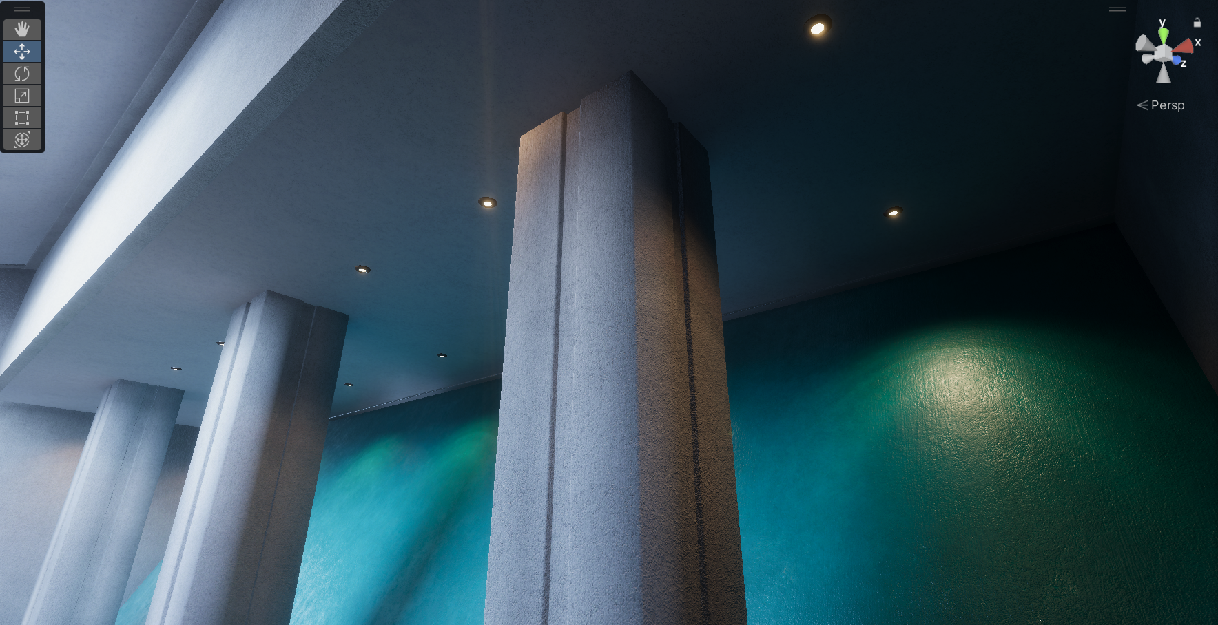 베이크가 완료되면 드래프트 라이팅 자산으로 인해 라이트 맵의 품질이 훨씬 낮아지고, 특정 부위에 더 많은 명백한 얼룩이 발생하며, 낮은 텍스처 해상도로 인해 기둥과 천장의 부드러운 그림자 사이의 연결이 끊어집니다. 다른 조명 설정 자산으로 실험하고 결과를 비교합니다. Ultra Lighting Asset은 최상의 품질을 제공하지만 몇 분간의 베이킹 시간이 필요합니다.