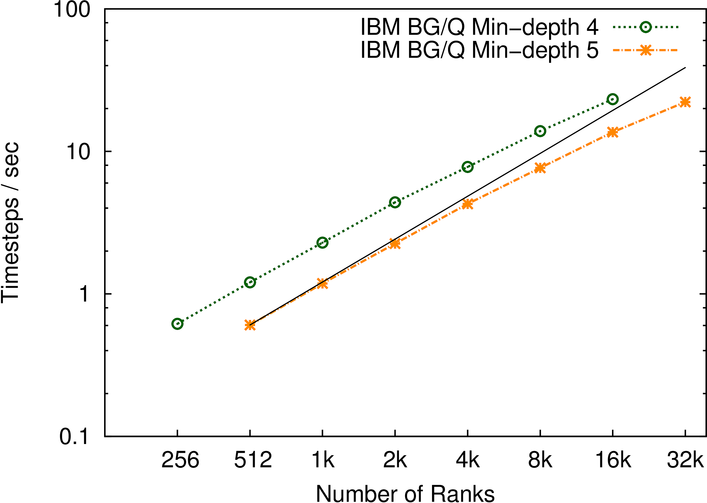 Kripke is a proxy application from Lawrence Livermore National Laboratory (LLNL) for Sn discrete particle transport codes. Given a volume of interest, knowledge of its boundary conditions and the particle-generating sources within and outside the domain, Kripke solves for the flux of particles at every point in the domain at a subsequent time. It does so by decomposing the domain into 3-dimensional subdomains that we call zone sets, and then sweeps the over the zone sets for all energy group sets and angular direction sets. These parallel sweeps are all independent of each other, and so Kripke sweeps from all corners of the domain simultaneously and pipelines sweeps originating from the same domain corner.