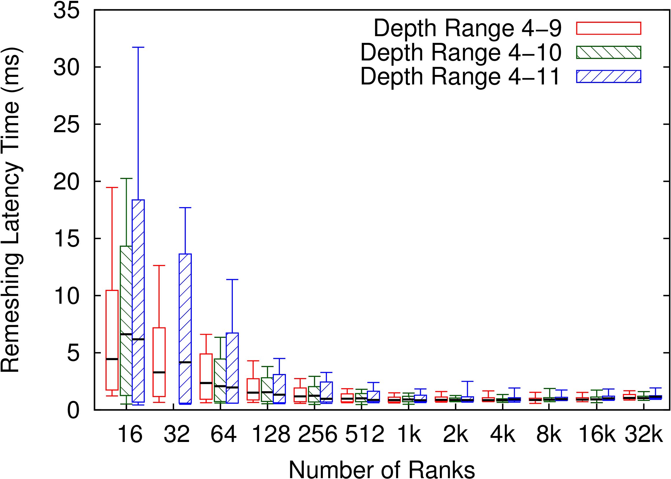 AMR is mesh restructuring algorithm for adaptive mesh refinement computations. The parallel mesh restructuring algorithm operates in terms of near-neighbor communication among individual blocks, and a single synchronization-only collective.