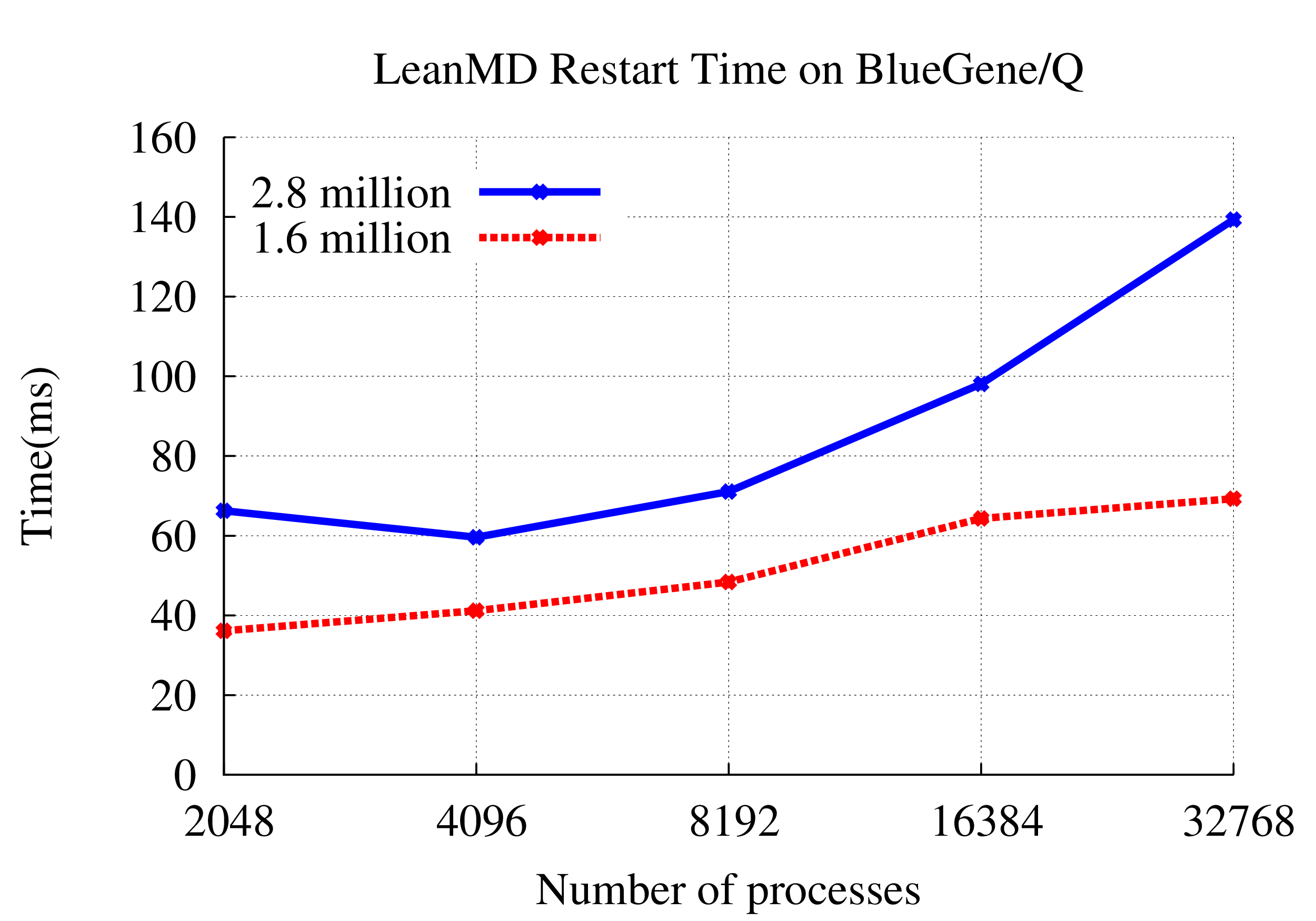 LeanMD is a molecular dynamics simulation program written in Charm++. This benchmark simulates the behavior of atoms based on the Lennard-Jones potential, which is an effective potential that describes the interaction between two uncharged molecules or atoms. The computation performed in this code mimics the short-range non-bonded force calculation in NAMD, and resembles the LJ force computation in miniMD benchmark in the Mantevo benchmark suite maintained by Sandia National Laboratories.