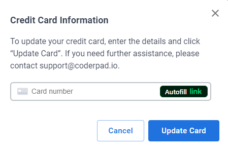 You’ll then see a pop-up where you can enter in the new or corrected card number. Click Update Card to finish the process.