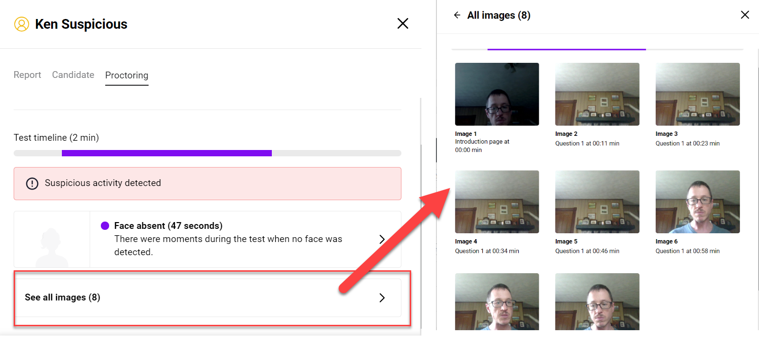 Clicking on See all images will allow you to see all the webcam images that were collected during the test.