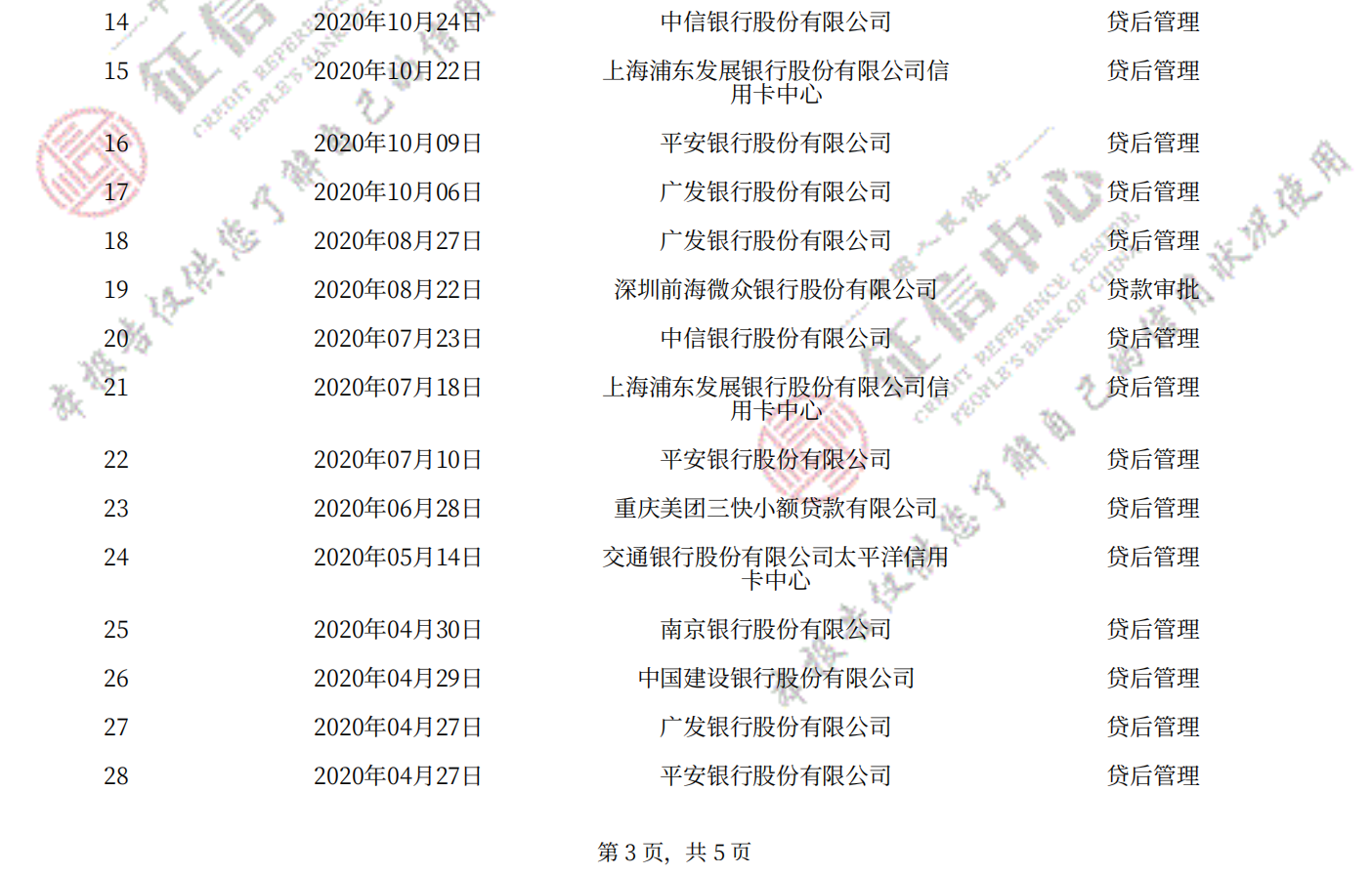 人民银行详细版征信记录,包括网贷、房贷、车贷、信用卡等