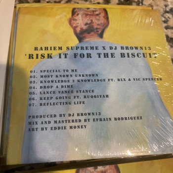 The mysterious axpuzzles is one of Rahiem’s most frequent collaborators, and their music together is probably the very definition of the Rahiem Supreme sound. He describes the beats he gets from puzzles as activating his sense memory: “The tastes, smells, where we at in the environment—puzzles’s beats give me that.” BBQ or Mildew, their newest and best collaborative work yet, is murky and muffled, full of dusty funk grooves and corroded textures that prompt Rahiem to reach into his memory banks. He offers stories about pre-gentrification D.C., family members acting strange at backyard barbecues, and bizarre drug experiences. “Stud Muffin” sounds like late-period A Tribe Called Quest trapped beneath a concrete slab; “Risk It For the Biscuit” has the retro-futuristic feel of a technicolor sci-fi film.