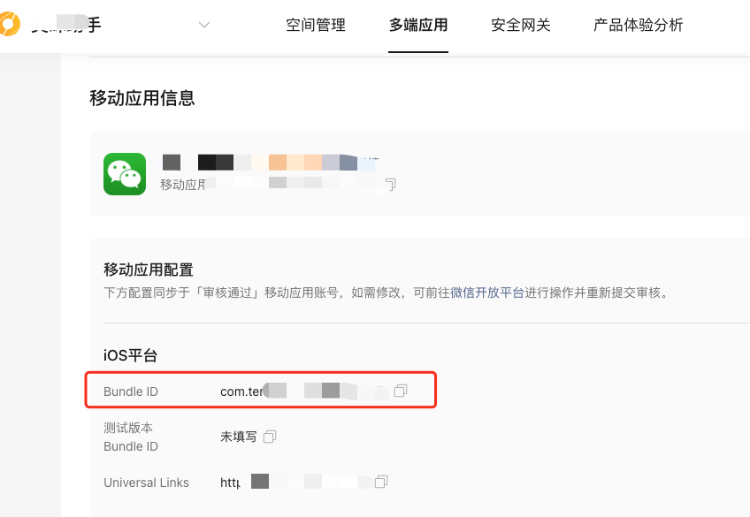 多端应用绑定的移动应用的 iOS 信息如下图: