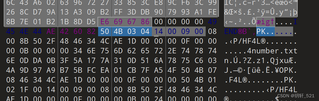 (我们发现在png文件的结尾后,还有一部分的数据,分析它的文件头,得到zip文件的信息。)