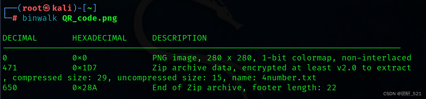 3、使用Kali中的binwalk工具进行检测,确实存在zip压缩包和4number.txt文件。