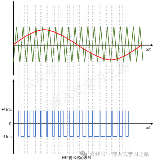 单极性倍频和双极性有点类似,载波是一样的,只不过还加入了一个相位相差180度的调制波形和载波相比,把输出的结果同步作用到H桥上。
