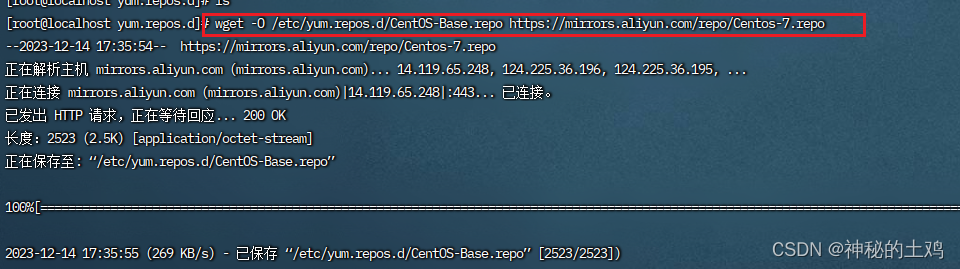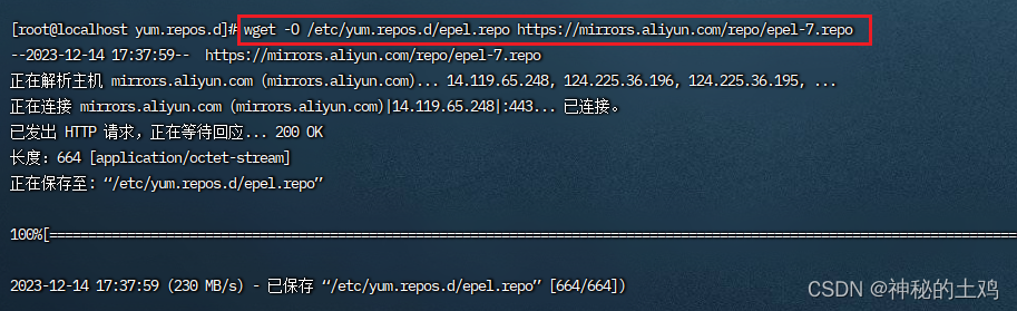 [root@localhost yum.repos.d]# wget -O /etc/yum.repos.d/epel.repo https://mirrors.aliyun.c 图示