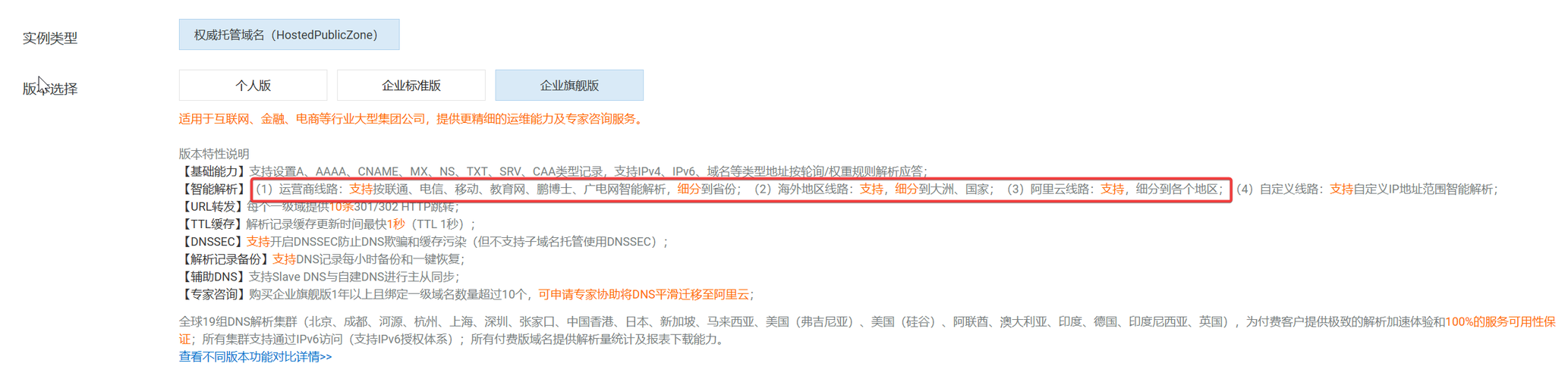 (1)运营商线路:支持按联通、电信、移动、教育网、鹏博士、广电网智能解析,细分到省份;