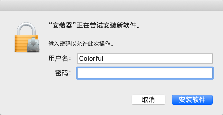 点击安装后,会提示输入用户密码: