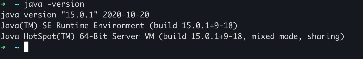 $ /usr/libexec/java_home -v 15 /Library/Java/JavaVirtualMachines/jdk-15.0.1.jdk/Contents/Home