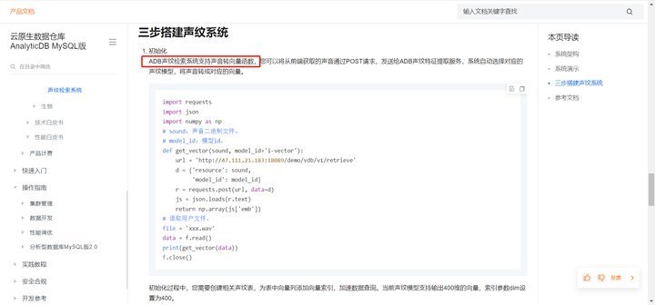 问题四:云数据仓库ADB声音转向量是怎么用的?例子当中的这个地址服务需要自己搭建吗?