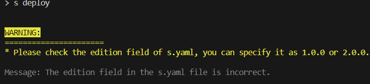 - Please check the edition field of s.yaml, you can specify it as 1.0.0 or 2.0.0.