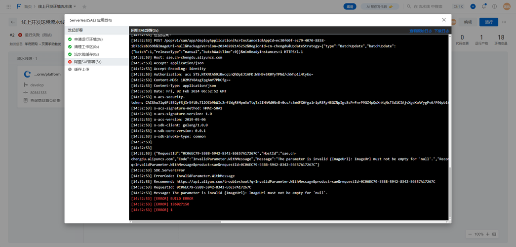 请问下Serverless 应用引擎,谁知道这是什么原因呢?我在云效上部署到SAE一直报这错