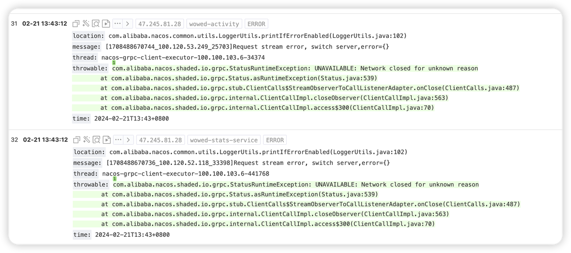 Serverless 应用引擎中nacos出现了连接异常,我使用的是sae自带的nacos?2024-02-21 13:43:12这个时候