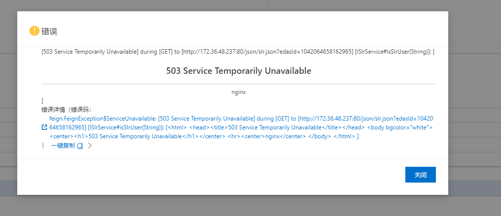 楼主你好,看了你的报错,错误信息 "503 Service Temporarily Unavailable"这是一个表示服务暂时不可用的HTTP状态码,通常是由于服务器过载或维护等原因导致的,暂时无法提供正常的服务。