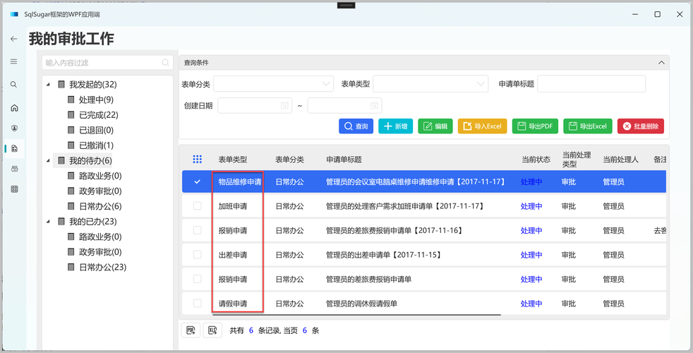 可以看出不同的流程类型表单,它们的表单结构是不同的,如果我们在一个固定的页面里面展示数据,那么这块表单的数据展示,就需要用到动态控件的展示方式。